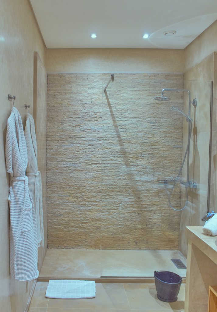 Avec sa terrasse privée à l’abris des regards, la chambre Bougainvillier d’une superficie de 30m2 est composée d’un espace salon, d’une grande salle de bain en pierre de Taza avec double vasque et d’un grand dressing.