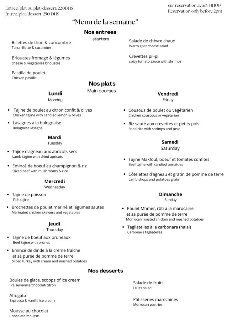 Venez découvrir notre cuisine traditionnelle aux saveurs marocaines et internationales, afin de satisfaire vos papilles gustatives nous utilisons que des produits frais.