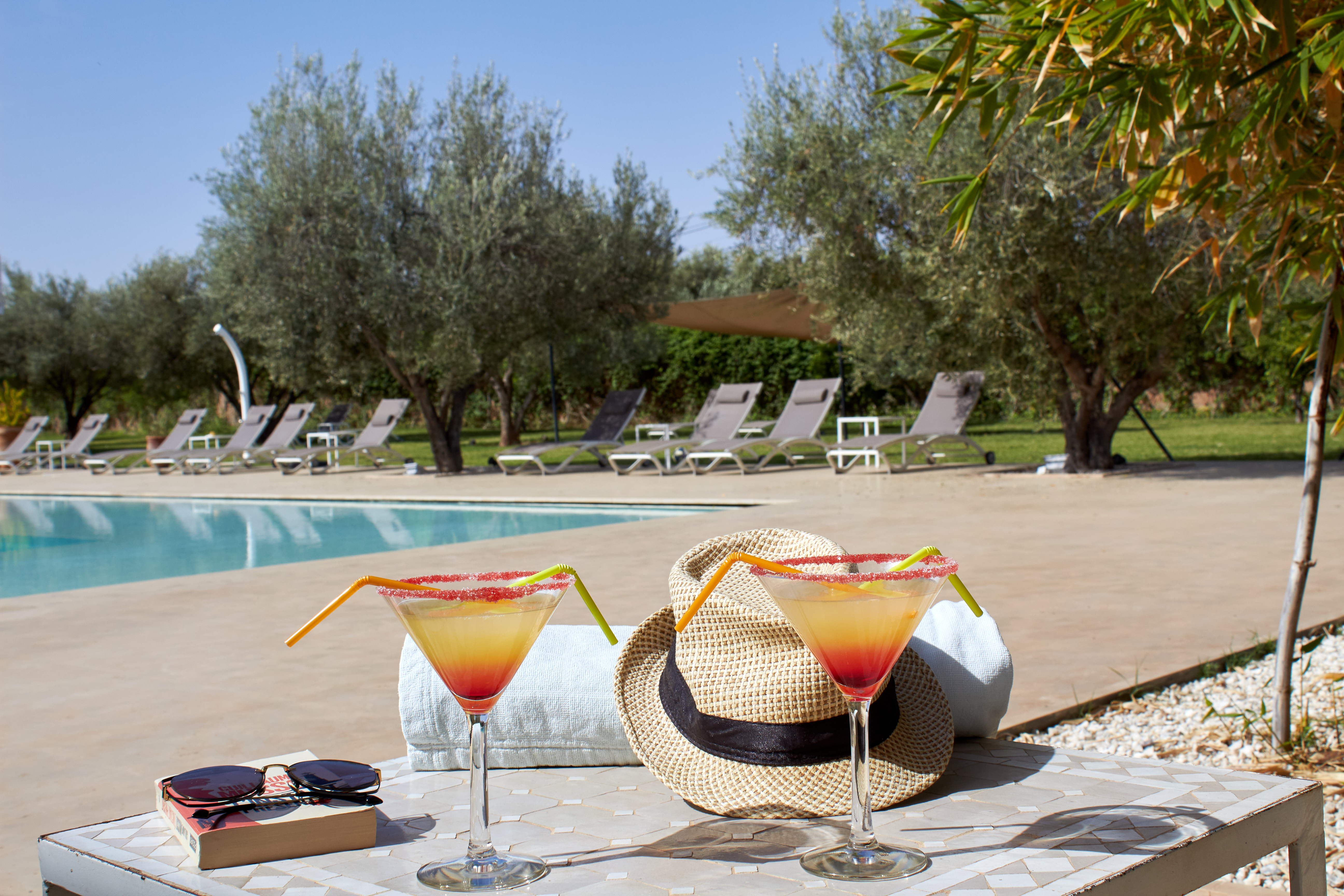 La suite Olivier profite d’une vue sur la piscine et d’une terrasse ensoleillée.